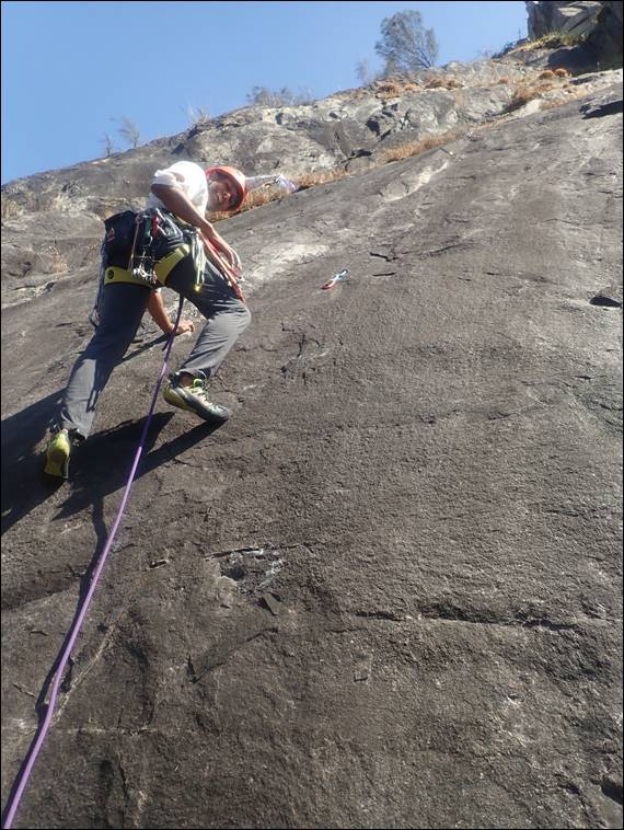 As for the climbing, it was a lot of fun. The routes were a mixture of bolted, mixed, and full trad lines. The various guide books gave three of the lines either a R or X rating. R indicating the protection is dodgy or runout and a fall could cause major injury, and X indicating that a fall could result in death. Climbing is however all about risk management, and you need to consider the grade or difficulty of the climb, your physical ability, your state of mind at the time, and the conditions on the day. Despite my early foot slips, today we both felt good: