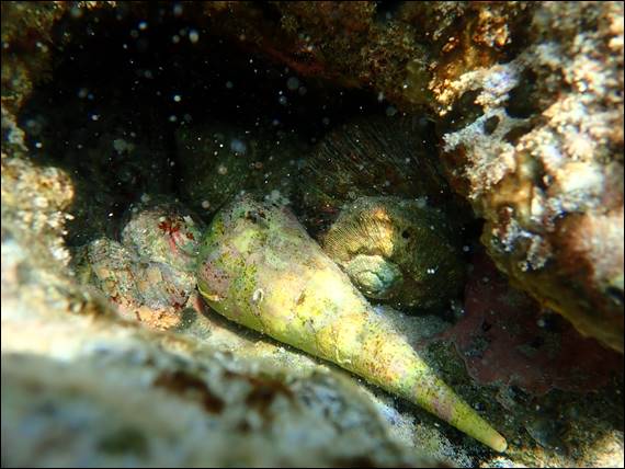I couldn’t resist the first fish image of Weeping Toadfish (Torquigener pleurogramma). Being the fish my dad so nearly got to see, when we helped him have a bash at using a snorkel mask on his last trip out to see us. Being terrified of the water he did really well, but while these fish were right at his feet in the shallows his emotions took over, and he can’t recall seeing them. I also liked the above image of a singular Giant Creeper (Campanile symbolicum) huddled together with a bunch of Turban Shells (Turbo torquatus):