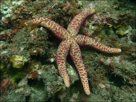As soon as I saw it, it disappeared into the crevices of the reef. If I saw right, it came from one of the lucky 10% of eggs laid by these sharks. The other 90% get eaten by predators, during ten to eleven months it take for the eggs to mature. My last image being of a Biscuit Seastar (Tosia australis). They come in a multitude of colours and patterns, but the distinctive shape and six to eight knobbly plates along each arm makes it easy to identify. While it may not have been picture perfect above, below the surface it was still possible to get some perfect pictures: