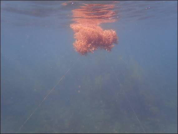And there have been plenty of boats out, with talk of bountiful amounts of Western Rock Lobster (Panulirus Cygnus) for the picking. Not that Rongy had much success recently. The people on the boat a few images up were however not diving but fishing. The weed floating in the foreground of the same image, being the above weed. Entangled in fishing line that had snapped, or been cut, due to the hook and weight being caught in the reef below. Not something I like to see, or leave behind, so spent some time retrieving all of the line: