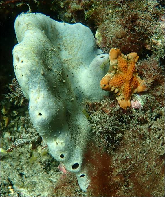 I was fully expecting not to see the abundant fish life I saw of Meelup Regional Park or at Canal Rocks, and was not disappointed when my expectations were met. But the ease of walking down and diving in, without driving, makes it worthwhile. I was happy to find the above Pale Mosaic Seastar (Echinaster arcystatus), one I have mentioned before so started digging for interesting facts about it. I read, again so it seems now that I have looked back at past posts, that some say this species resembles the Mosaic Seastar (Plectaster decanus):