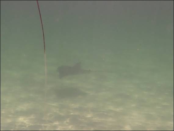 This order includes about forty percent of all bony fish, and is the largest and most diverse group of fish. Making me wonder what fish, if any, I see that are from a different order. But I’ll end this post with one sighting that is definitely from a different order, being Myliobatiformes, which comprises rays from eight families. This one being a Southern Eagle Ray (Myliobatis tenuicaudatus), which I daren’t follow out into the bay in case I drifted into the path of boat or jet ski. So I continued to hug the rocks: