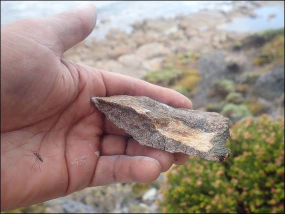 It’s been a while since I took a proper whipper, and this was certainly one of them. It of course did not stop us, and we continued to enjoy the climbing at the Organ Pipes, as this place is known. I even took the dislodged hold home with me to add to my rock collection. In addition to a good tennis ball sized ecchymosis, bruise, on my upper thigh were I swung back into the rock. It is questionable as to which is more colourful, the bright orange gneiss on the outer surface of the rock, or black and purple created by the damaged and leaking capillaries: