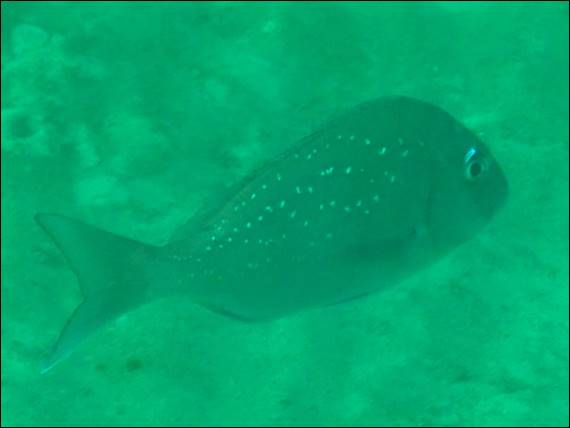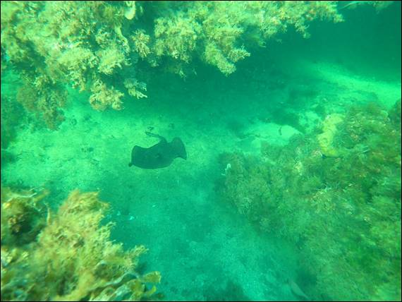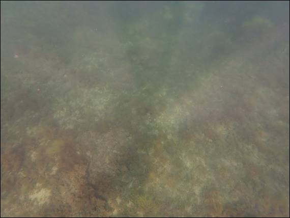 With the added height advantage of being on the beach, we could see a shape where the fish had been jumping. Someone was out there snorkelling, whether they were there before and the reason for the jumping fish we will never know. They stayed there for a long time and seemed to going down to check the area out heaps. So this morning that’s where I went, and was greeted by relatively barren ground. Not as deep as past the pontoon, but deep enough to distort the colours, with ground that really wasn’t that interesting: