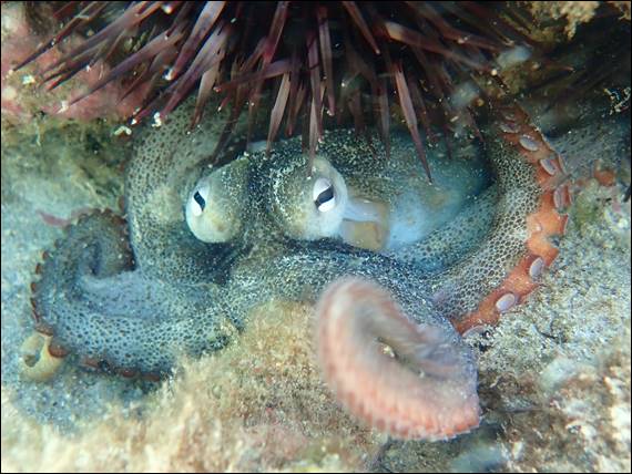 This time we were not intending to be in deep water, but the term deep is relative depending on where your comfort zone is. Lisa had already said she probably won’t go as far out as I would, which was fine. Almost immediately we saw fish clear as daylight, in the much shallow waters than I had been that morning. When I spotted a Western Rock Octopus (Octopus djinda) it provided a great opportunity for Lisa to have a bash at duck diving, so she could get a closer look. And just like the one I found last week this one also surprised me when it reached out: