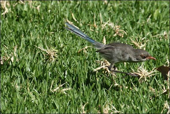There was only one thing to do. Howsie and I wandered to the car, and as we waited for the kettle to boil we watched the birds chase insects on the lawns. Mostly male eclipse Splendid Fairy-wrens (Malurus splendens), the term eclipse referring to the relatively dull plumage worn by males for a month or more in summer after breeding. As Howsie had just experienced, Ari’s energy reserves were being drained as he followed up Pocket Knife. Howsie’s eyes where however still sharp, but we have struggled to identify the skinks he spotted:
