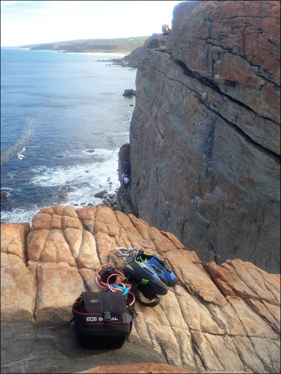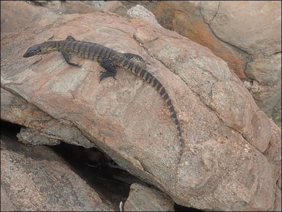 Afterwards he admitted to being mentally exhausted from the route. Finding the gear was certainly a challenge, but when he found it the placements were solid so he had been safe. And while the grade was lower, he had also battled with the much reduced friction, further putting his nerves on edge. In addition to being happy with the ascent that was a clean lead, he along with all of us were rewarded as we started to make our way back down. When the above Rosenberg’s or Southern Heath Monitor (Varanus rosenbergi) made an appearance:
