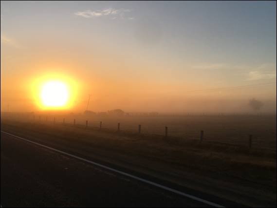 Regardless of your beliefs Easter is often seen as a time for people to spend with family, and of course eat chocolate. Not surprisingly the call out to see who may be available to get out went unanswered. Each of my normally trusty partners in climb busy with family and/or other things. So on Friday, while the household was dark and quiet, I slipped out the door for a solo mission up to Wellington Dam. Visibility was below a thousand meters for parts of the landscape, being shrouded in fog and making the rising sun glow orange for that bit longer:
