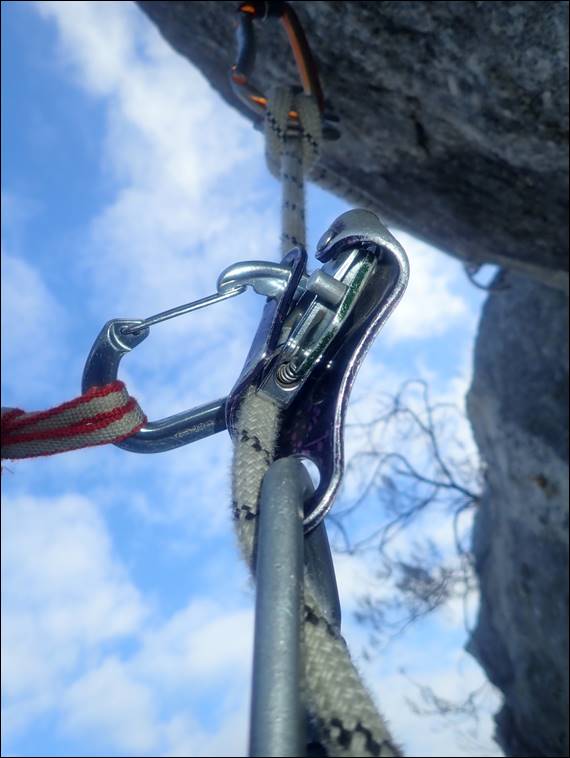 Climbing by myself I use the above ascender. When I fall a single spring loaded cam with teeth compresses the rope against the main housing. The short teeth don’t go much beyond the outer sheaf, but considerably add to the grip the tool has on the rope. A simple and effective system, one you have to have complete trust in it. It may seem madness, but is no different to abseiling that also uses a simple device and relies purely on friction. Not put off by my silly route choice, I found three more to play on. Climbs I would normally run up: