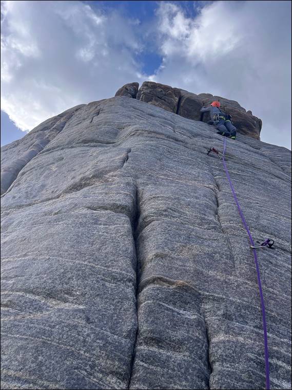 The whole time it took to finish up we didn’t see another wave like it. This may seem like enough to put anyone off, such that they would pack up and head home. Not us, while what we do may seem a bit daft, we are safety conscious as we know that things can and do on occasion not go to plan. Yes, I may have lost a camera but neither of us were hurt, so we climbed on. How could I not, as I still had to have a bash at my new route. The one with the ‘adequate’ gear, which upon checking Craig said looked sketchy but was in fact reasonable: