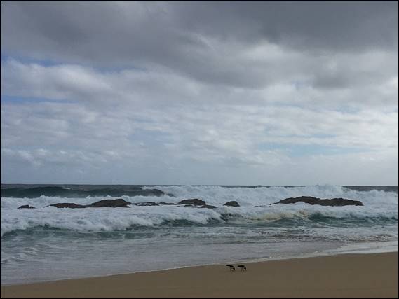 Craig wrapped the session up with one more lead, before we returned to the scene of the crime. We poured a cuppa, sorted the sodden gear, and scanned the waters. Still no waves matched the beast. Back on the beach we spotted holes in the sand, likely to be the homes of Ghost Crabs (Ocypode), and a couple of Australian Pied Oystercatchers (Haematopus longirostris). These were the last photos I took on my phone. The wave may not have taken it, with the camera, to Davy Jones’ locker; but had inflicted water damage to seal its fate: