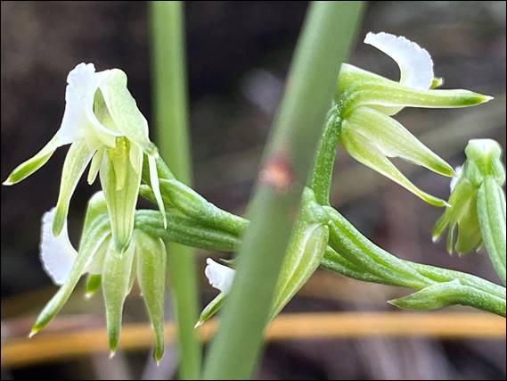 The early flowering bunnies were done, and there wasn’t much else in bloom. I did however luck upon two Scented Autumn Leek Orchids (Prasophyllum sp. ‘early’), one being shown above and the other one not having opened yet. The two plants helped confirm I was correct with my identification of the unopened specimen last week at the Ambergate Reserve. The light green flowers being one of the few differences that can be used, by an amateur such as myself, to distinguish it from the Autumn Leek Orchid (Prasophyllum parvifolium):