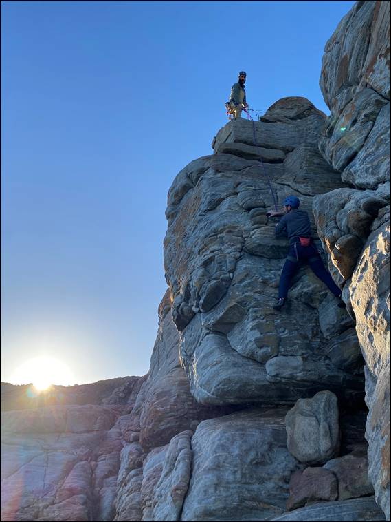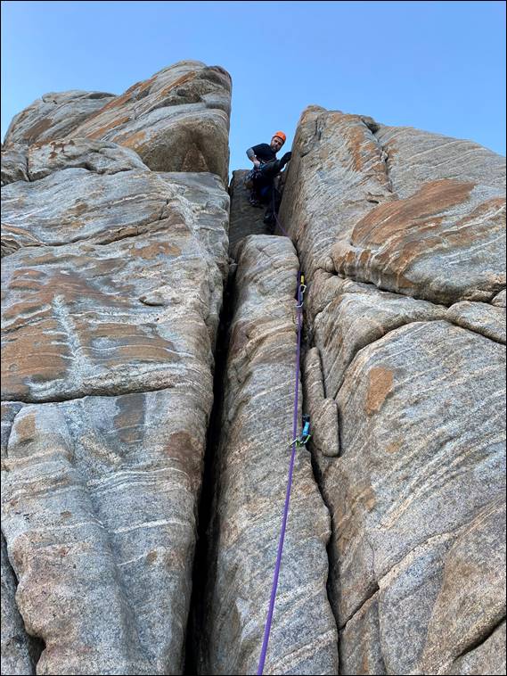 We started on the Northern Blocks. The area that would get the sun when it finally creeps over the landscape, which would be approximately an hour after our arrival. Not so we could to climb in the sun, but due to offering good introductory climbs. On which the gear is that bit easier to place. David has climbed at many of the great locations in the British Isles, which I used to frequent in the nineties. This included the Peak District, home of the infamous gritstone https://sandbagged.blog/2017/07/30/part-4-the-peak-district-learning-the-ropes/: