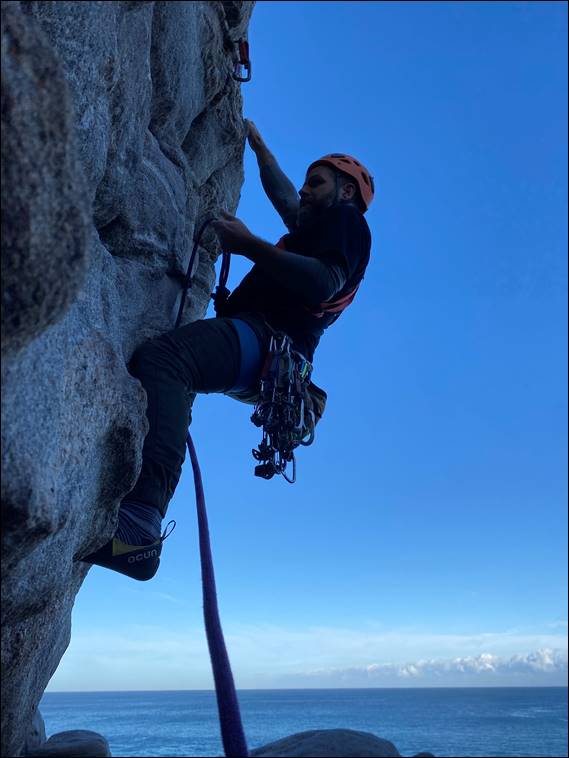 Certainly not healed, although after another week of resting up things have improved. As a result I cheekily got Howsie to throw me the line, so I could climb the routes both he and David had led. It does mean I am entering that period where it is enticing to go harder, but in reality I still have to be sensible. Otherwise I will risk prolonging the time it will take for a full recovery. The sun finally made an appearance as we played on our second climbs of the morning. After which David soaked in the sun, while taking a moment or two to take in the scenery: