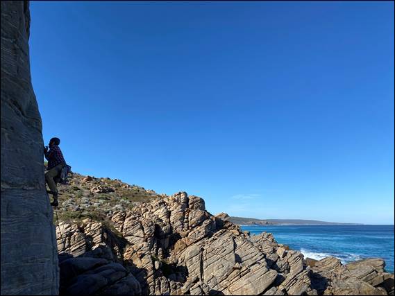 He agreed the route was worthy of a higher grade than the existing lines on this wall. And just to make absolutely sure it has not been recorded before, I’ve checked my 2016 South West Rock and the previous 1996 Margaret River Rock guide, as well as The Crag. There is no record of it anywhere. I’ve led it several times over the last decade and half, and more recently Rongy has too. The mini-guide has now been updated to include this and other recent new lines. It has been sent it off, so will hopefully replace the outdated guide online:
