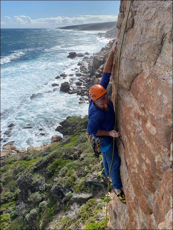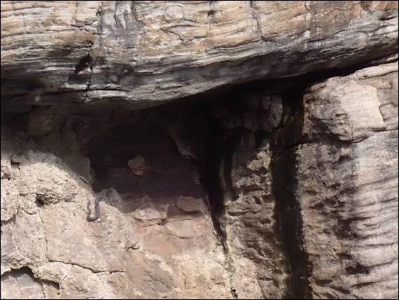After a couple of failed attempts he admitted he wasn’t up to it today. Whether I had affected him, he was simply tiring from lead after lead, or that the route is harder than I had graded it didn’t matter and he was happy with how he went on it. As he sat atop belaying David who stretched to full capacity to make the above move that Howsie just couldn’t commit too, he somehow spotted one of the biggest South-western Carpet Python (Morelia imbricate) we have seen here. Shown two images up: