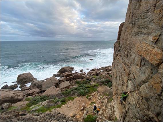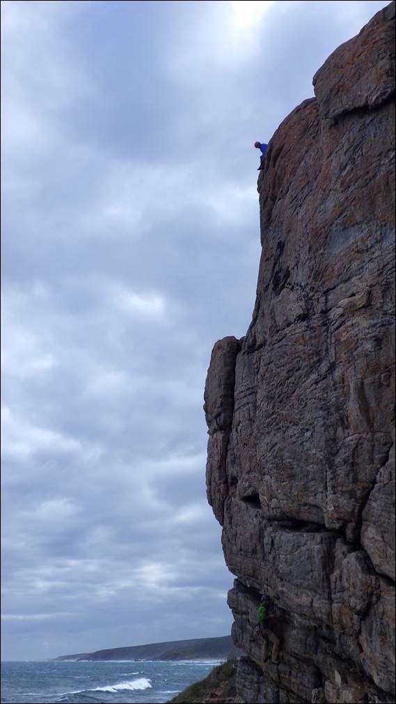 The forecast was grim, very grim. But as Friday approached the synoptic charts indicated an early sliver of dry weather may be upon us. Craig and Howsie were game. We had a choice between Wilyabrup and Welly Dam. The latter, being inland and potentially further away from the approaching front so may have stayed dry for longer. No one seemed keen for hard climbing, so Wilyabrup won out. Working in our favour, in more ways than one. On arrival I thought it may not have been the right decision, when, while using the facilities, rain arrived: