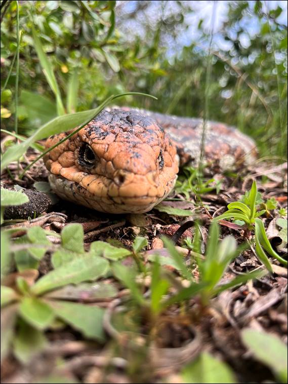 We did however carry our packs up as we solo’d up a new line, which Craig aptly called ‘The Rambling Buoy’. Probably no harder than a grade 7 or Diff in UK grades, but a fun route all the same. While soloing a new route with packs on may not seem sensible, taking the Cape to Cape track back certainly was. We spotted a couple of orchids in flower that I’ve mentioned previously on recent trips to Wilyabrup, and signs there are plenty more other ones on their way. We were also greeted by this very sluggish Bobtail Lizard (Tiliqua rugosa):