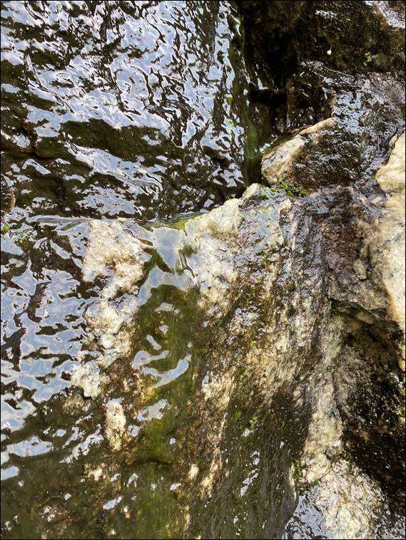 I think it may have been Howsie’s suggestion to come here on Friday that resulted in me being drawn this way today. He’s still crook, and I doubt anyone else would have contemplated joining me for a visit here on such a day. I could hear frogs croaking away in the quarry, a sure sign it was going to be wetter than usual. They were probably hidden in the many nooks and crannies, but I failed to find any of them. Water had been flowing down several of the climbs for a long period, with green algae taking hold: