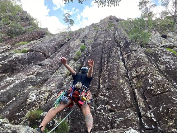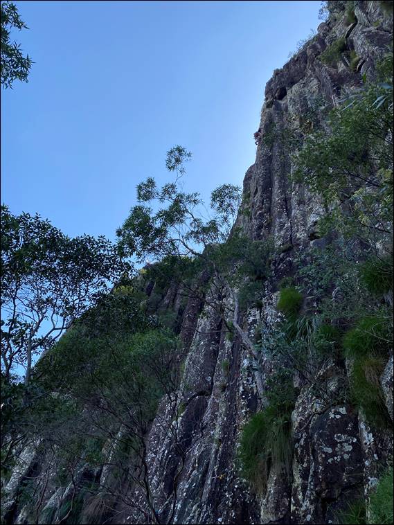 The area is of course steeped with a much older cultural history, having deep spiritual importance for the Jinibara, Gubbi Gubbi and Kabi Kabi Traditional Owners. And in more recent decades joint agreements have been put in place to ensure appropriate management of the area. This has generally, so far, not prevented climbing. Access and activities are however, and understandably, restricted on some peaks. But not Mount Ngungun, and we aimed for the Upper Cliff, offering 40 plus meter climbs on the hexagonal basalt columns: