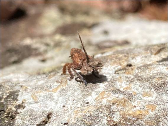 It was so good that it took a while for everyone to lead or second the very cool two pitch routes. And while that happened the rest of us were kept entertained with a myriad of interesting insects and arachnids that were mulling about below. The above insect is a nymph planthopper, probably of the Eurybrachys genus. This one may well have lost one of its false antenna, which are located at the back of the body. This is an example of mimicry to make it look like a different and more aggressive creature, to deter predators: