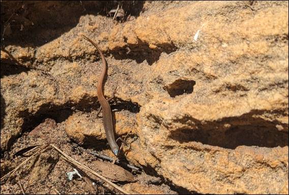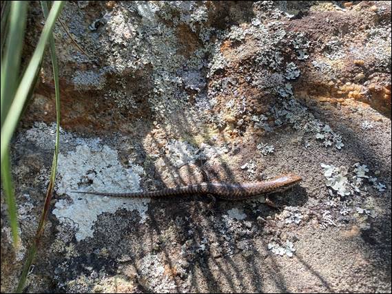As the morning wore on the sun crept round, and this brought out the skinks. The timing was good, as Sarah doesn’t climb as much and this left the four of us to pick the lines off while she indulged in herpetology. Letting us know when she spotted a cool find so we could have a look. Two images up there are two Southeastern Morethia Skinks (Morethia boulengeri) facing each other of. This is a common species found over a large area and living in a wide range of habitats. Population densities can be as much as several hundred in one hectare: