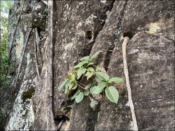 The above is a Dark Barsided Skink (Concinnia martini). A species with a more confined range of south east Queensland and northern New South Wales. Sarah also noticed something I missed, a climb that was called Orchid Lane. So while Rongy and Mikie kept picking off lines Howsie and I had bagged before their arrival, we wandered over to check out the climb. The rock here was darker, more rounded, and had interesting pockets. It also had a tree growing half way up the face with roots draping down the rock that seemed to disappear into the rock