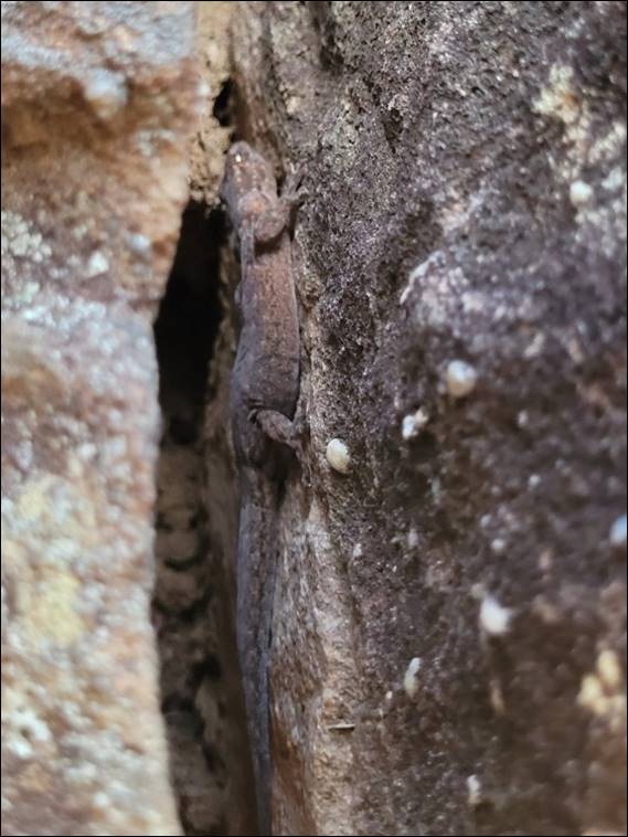 It was a good way to stop me procrastinating, and both lines were great fun. I also managed to find a couple of Dubious Dtella (Gehyra dubia) in the final crack on the second route. It was a good job Sarah was about to identify our reptile finds, as this one is a crafty fella. It can change in appearance both to avoid predators but also to deceive its prey. They can change from a darker to lighter colour, and are also able to lose the spots that are normally along their back. While we got images of our reptilian finds, very few images were taken of the climbs: