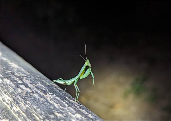 We used all the daylight available and then went back to the camp. While the days were warming up the nights were a little cooler. Not so cold as to really need a fire, but it was very cosy and did help to keep the mosquitoes at bay. I was really expecting Sarah and Rongy to go for a walk to look for snakes, but it didn’t happen. She did however spot the above False Garden Mantid (Pseudomantis albofimbriata). Being one of the smaller species of Praying Mantids species found in Australia, only growing to just over a couple of inches in length: