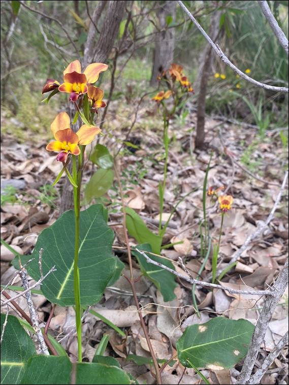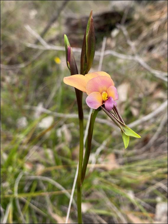 On the plus side we came across a single Rusty Spider Orchid (Caladenia ferruginea), which I mentioned in my last post as a species we have in previous years found at Ambergate Nature Reserve as a bit of a companion spider orchid to the Swamp Spider Orchid (Caladenia paludosa). Above we also found a single flowering Purple Pansy Orchid (Diuris longifolia), one of many donkey orchids species. The species name selected due to the length of its leaves that protrude below the flower head, with longifolia meaning long-leaved in Latin: