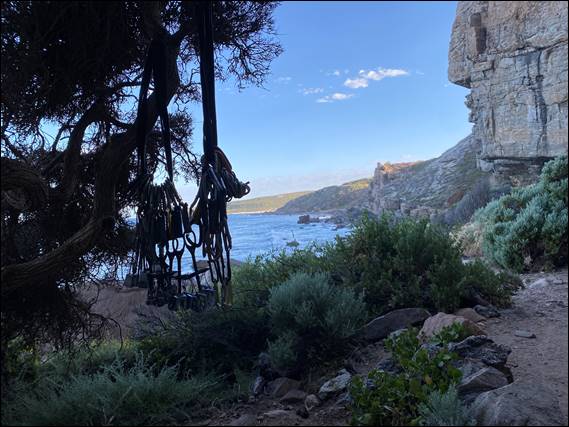 It was not to be. No matter how hard I looked there were no pythons to be seen on the flake. Harry had to work hard to get this one, stating after he topped out that he was done. Josh had managed to find his mojo again, cruising the route but equally happy to call it. The sun would soon bathe the entire crag and none of us were keen to endure that. I hadn’t climbed out with my pack as I normally would on this line, so sorted left all the gear up top to save carrying back up. Meanwhile Josh went for his customary dip in the ocean, before we walked out: