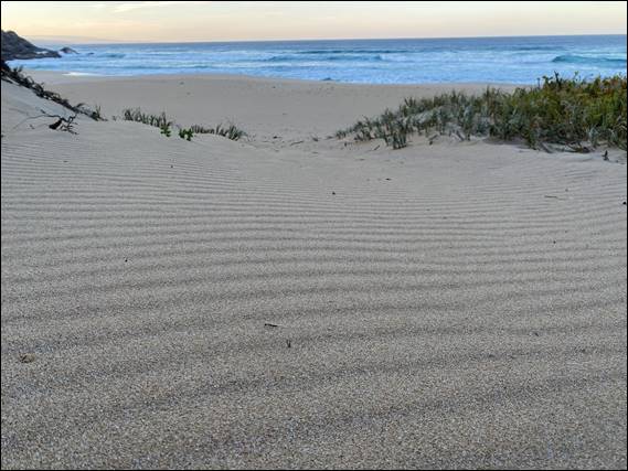 So much so that by the time we got home, and after we had unpacked everything I risked the local waters to declutter my head. Needless to say while the temperature was lush, and did the job intended, the visibility was rubbish. I was however lucky enough to stumble across my first ray of the season. What with the murkiness and dusting of sand across its body, I’m not game to try and identify this one. The next morning I was back out looking at sand, liking the ripples. This time above the water line, as Adrian and I walked into Moses Rocks: