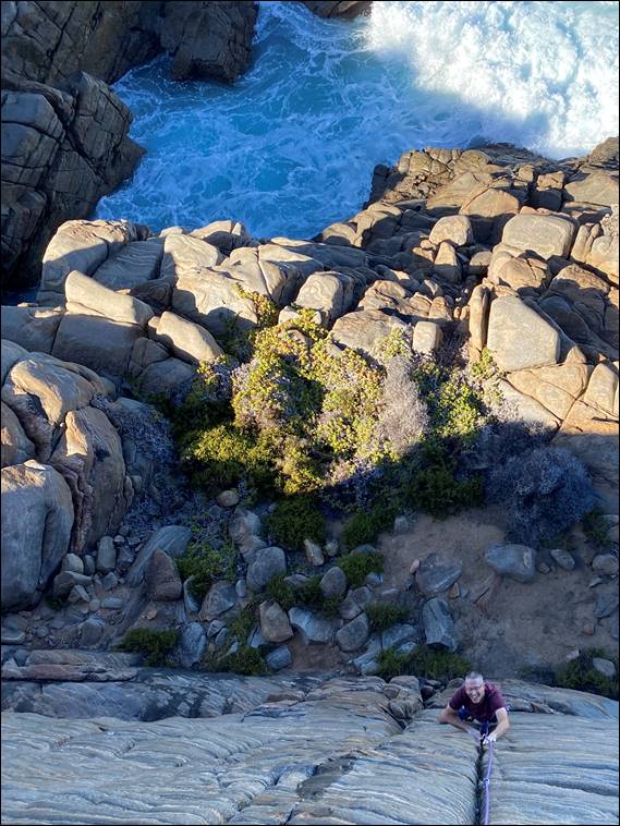 He came down for a few days and aimed to squeeze a couple of mornings climbing in. After having recently been spoilt when he climbed on the big walls over in Tasmania, he suggested Wilyabrup instead of Moses. Maybe because it offers the longest routes along the south west coast, and higher grades. I was personally glad to have veered his interest to this smaller crag, which he had not been to before. He noted the shortness of the crags as we walked past the different sections, but soon understood the appeal of the place: