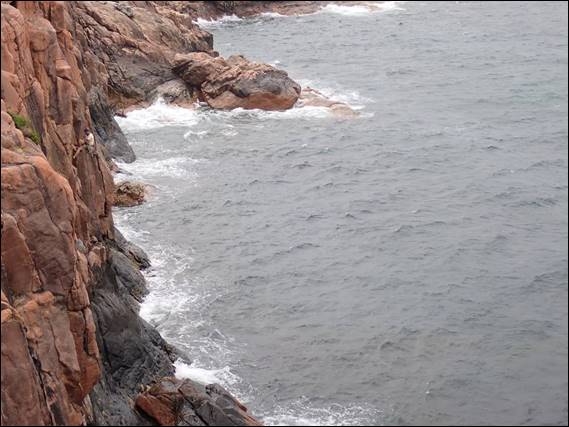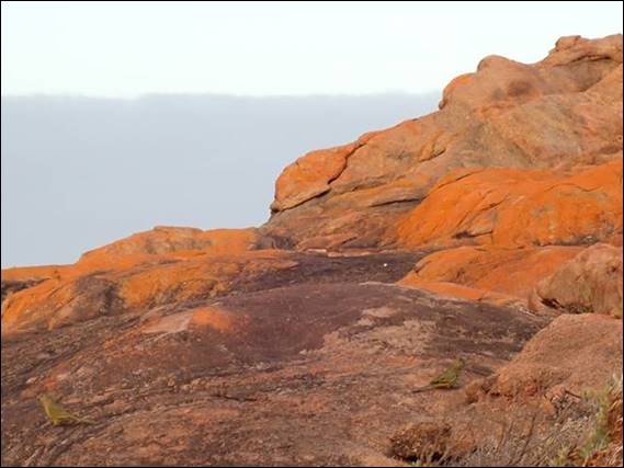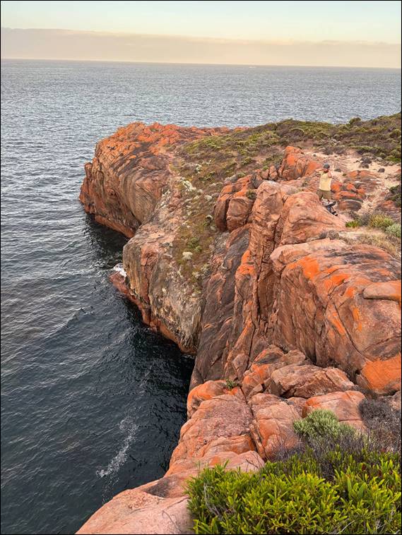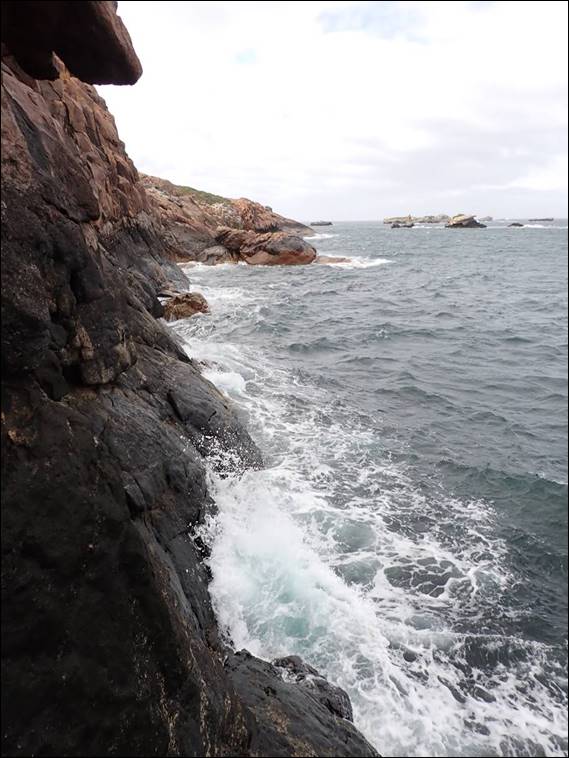 Clouds rolled in and with them came the occasional shower, and while we didn’t feel threatened by this we did seek shelter at one time. Hiding under a capping rock with our feet dangled over the edge. Just to the side a Silver Gull (Chroicocephalus novaehollandiae) perched and watched, maybe wondering what we are up too. A good question as with the swell, occasional showers, and water hanging in the air we were going to, and did, get wet. Our perch did however provide us with a wonderful view, and a moment to take it in: