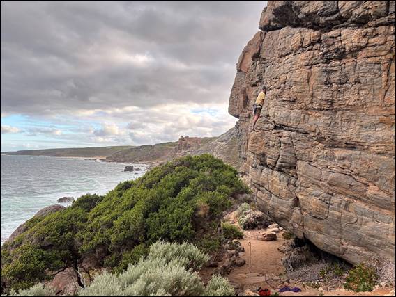Howsie’s idea was therefore to only hit the classic three star climbs, as detailed in the climbing guide that went to print in 2016. Admittedly there may now be more listed on the online database provided by The Crag. After all Wilyabrup is recognised as a brilliant place to climb. It is highly rated far and wide, and is included in many a coffee table picture book. So it comes as a bit of a shock that when I wrote the guide the main area was only thought to have nine three star lines. With only three routes below grade 20 being awarded this lofty status: