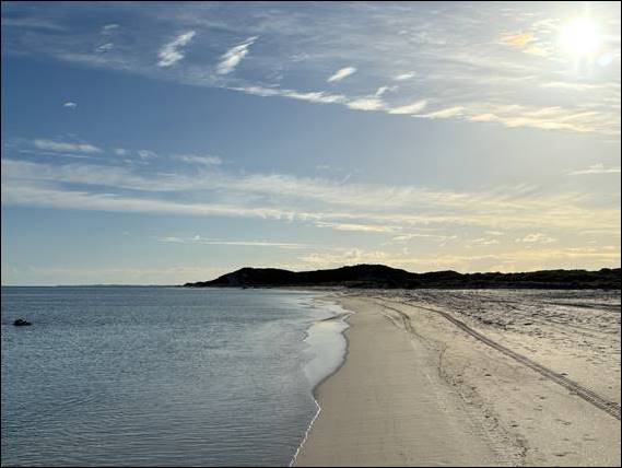 Encouraged by yesterday’s ocean conditions, which had finally settled down to what we would normally expect it be like, I decided to walk past the point to the more intact reefs. I could have driven. A sand bar had formed across the Capel River mouth. as usually happens during the low rainfall period of the year. What with my sedentary job, I didn’t mind walking down and it was only a couple of kilometres. Beside if I drove I’ve have to let the tyres down and then pump them back up, and that becomes a phaff that I just can’t be bothered with: