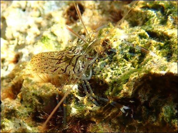 Above is what I had previously thought may have been a type of Boxer Shrimp, it is however a Red-handed Shrimp (Palaemon serenus). Being so named due to the red marks just above the claws, which are on the elongated second pair of legs. This is where it gets it’s common name from but the scientific name comes from a Latin word serēnus. This means clear, bright, serene, tranquil, or calm. Quite apt for today’s dive. I got out, due to feeling a little chilly, after an hour in the water and even after I had walked back, the water still looked serēnus: