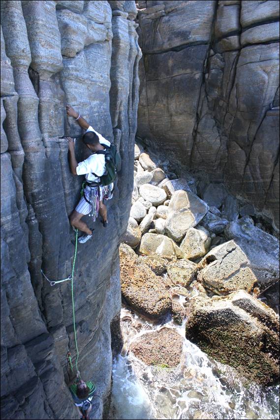 A Most Unlikely Journey 50m 17 (UK HVS/E1 5a), Krish Seewraj, Mark Rewi (alt) Aug 2000