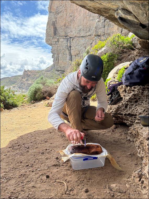 Sadly walking down we came across a dead Carpet Python. The lower part of the body had been ruptured suggesting it may have been squashed. By accident or not was unclear. On a more happy note the unexpected blue skies that seemed to appear quickly and remain with us, drew out quite a few live scaly friends. As well as an almost surfing pod of dolphins. They lined up for the bigger waves and then teasingly hovered on the crest without following it in. Three climbs in it was time for Craig to pour a brew, and Howsie surprised me with a cake: