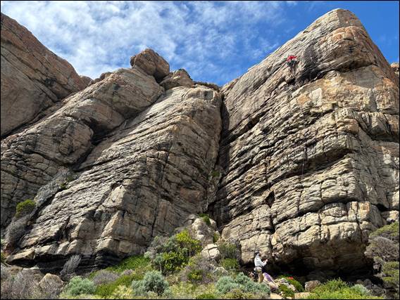 After a bit of a chat about what Howsie and Craig felt. We agreed there are a few other lines at Wilyabrup that will provide a fall of a similar length, which do not have R ratings. The gear is bomber and while untested you are probably not likely to hit a ledge. Not surprisingly the wet conditions made it feel harder but the grade of 14 was considered reasonable, sorry Adrian. If Howsie had waited to lead it for his second route we would know for sure. As on the longest single pitch lower grade traditional style route here, I was bathed in sunlight high on the wall: