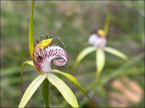 A completely black Christmas Spider, which is called a melanistic form. This occurs as a result of a the birth defect, when too much melanin pigment is generated in an organism resulting in a dark form specimen. This is the opposite of an albino, which has little to no melanin pigment. Following on with the Christmas theme, I was extremely lucky to stumble on a patch of three Christmas Spider Orchids (Caladenia serotine). It felt like a present. They were the only ones I found and I can now say, again the words of Barney Stinson, ‘mission completed’: