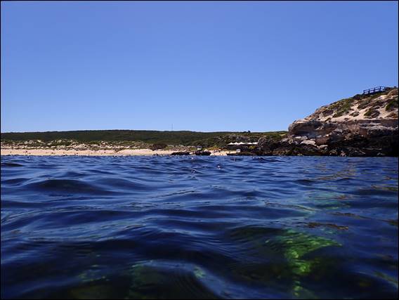 For various reasons Lisa was not so keen. Fortunately for me the café has good coffee and a vista that she could happily watch for hours, so she told me to go in. The beach was way busier than what we are used to back home, but once under the water the crowds who stuck close to shore were a distant memory. Not far out I came across a Southern Eagle Ray (Myliobatis tenuicaudatus) heading in the opposite direction. Most times I see these they try to swim away, this one however cruised right past me not even bothering to speed up: