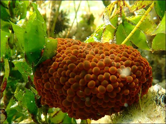 On the way back in, my slow and meticulous scouring of the weed paid off. I thought I had come across a collection of eggs, it is however a Wandering Sea Anemone (Phlyctenactis tuberculosa). These anemones do not anchor themselves to a spot, and are described to ‘wander the ocean like an underwater tumbleweed’. It’s bubble-like sacks can come in a range of colours from brownish orange, mauve, light grey to brown in colour. If you look closely these ones also display a stripy pattern. During the day they are bundled together: