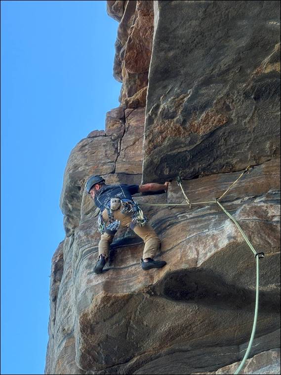 As such you’ll need to head to that post and look at the guide for Lost Buttress to see what new lines we did https://sandbagged.blog/2025/12/29/mini-guides-for-crags-of-the-south-west-of-western-australia/. Not seeing anything else worth bagging on the short wall, it was back to the main and taller area. Here we gobbled up another four splendid routes, with Howsie again keen to take on the slightly stiffer opposition, before we called it a day. Whether it was the morning’s activities or the building heat of the day, the legs felt more lethargic walking out: