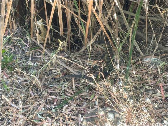 Someone must have been listening, as when we were nearing the carpark we came across a juvenile Southern Heath Monitor (Varanus rosenbergi). So well camouflaged we nearly didn’t see it. This one being approx. a foot long, just a fifth of what they can grow to. I’ve read the eggs are laid in active termite mounds, which have sophisticated passive ventilation. This provides the warmth and humidity required for incubation. Once hatched the young monitor can then feast on their host, and will continue to make use of the mound for shelter for several months: