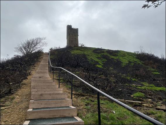 The drives between each stop varied from one and half to half an hour, allowing us to take in various routes and different sights. After our stomach filling meal at the Rose & Crown, we spotted a tall building on a hill. This resulted in a diversion. At a carpark I ran up the many steps to check it out, leaving the folks in the car; only to find a higher carpark that we then drove to. Castle Hill, was first known to be settled some 4,000 year ago. The tower however is a mere 127 years old, constructed to commemorate Queen Victoria’s Diamond Jubilee: