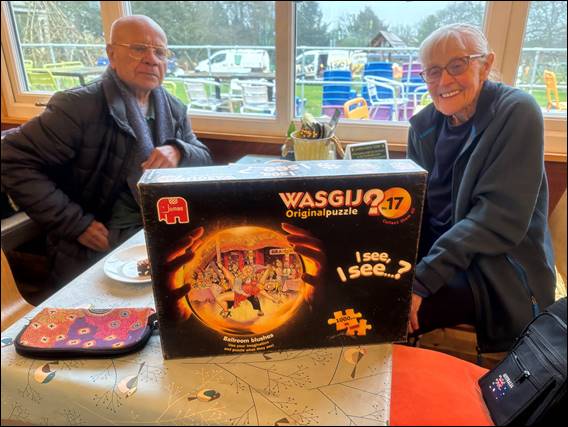 In fact everywhere we went as I escorted the folks in, at times one on each arm, not just staff but also other patrons were extremely considerate. Opening doors, moving out of the way, giving us time to shuffle in, and also spending time to have a chat. My dad likes a chat, and will bend the ear of anyone willing to listen. The staff at the Olive Tree Café were particular champions in this regard. After we moved on he was back to his usual self and was able to thoroughly enjoy cake and tea at the Quackers Café, in the image with the puzzle: