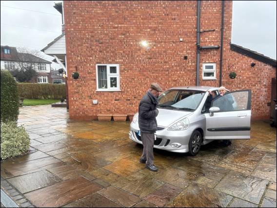 In the next image the folks are getting into the car for the next trip out. Rugged up and hugging their clothes round them. The temperatures never hit double figures, and it was not uncommon to be below five degrees. It was after all winter. The pavers out the front of the house, and also in the back garden were once again algae coated. When wet they were quite slippery and dangerous for the folks. As such in between trips out and games, and when the limited daylight hours permitted, I set about pressure washing them: