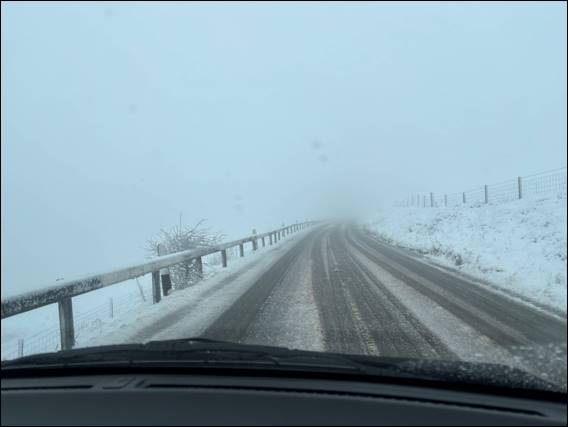As we drove up into the hills the snow fell thick and fast. The top had a good four to six inches. The road was slushy and we went slowly especially on the steeper and windier sections. It was absolutely brilliant. I stopped several times, braving the zero degrees and biting wind to get out and take it all in. Needless to say the folks stayed in the car. To top it off the Cherry Tree pub was another cracker, with a wonderful outlook. Even in the depths of winter it was very popular with heaps of tables reserved. I felt better for booking this one: