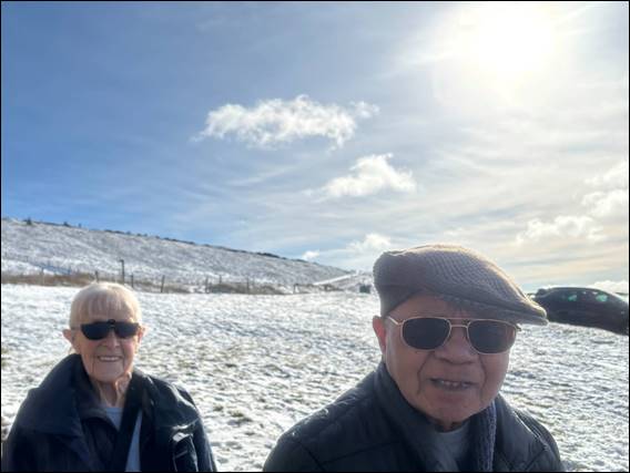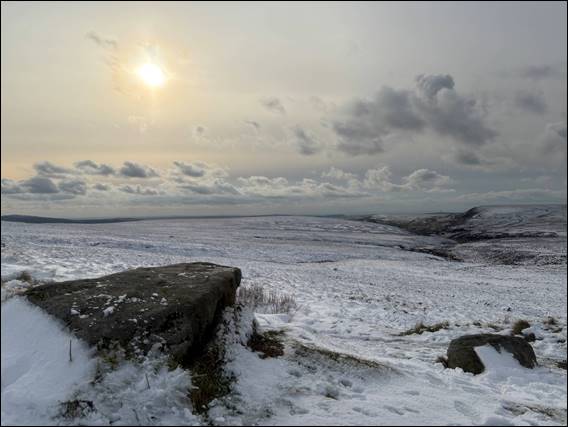 That night Neil and Leena popped over for a takeaway, which was the only evening meal we had and indeed needed. With a forecast for clearer weather on Friday and as we had not seen the views from Holme Moss Summit on our first full day trip, I decided to take the same route. As we approached the valley before the mighty hills, snow was sprinkled on the higher ground. Needless to say I got very excited, and the folks were also very happy to see the white stuff. Being a novelty, as it is not the sort of weather they would normally get out in: